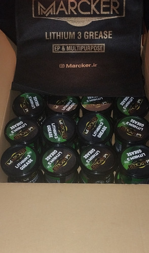 گیریس MARCKER لیتیوم نمره 3. تحمل دما فشار بالا. کرم رنگ. 40 عدد 100گرمی داخل کارتن قیمت عمده