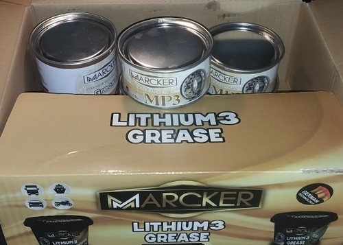 گیریس MARCKER لیتیوم نمره 3. تحمل دما و فشار بالا. کرم رنگ.24 عدد 200گرمی داخل کارتن قیمت عمده.